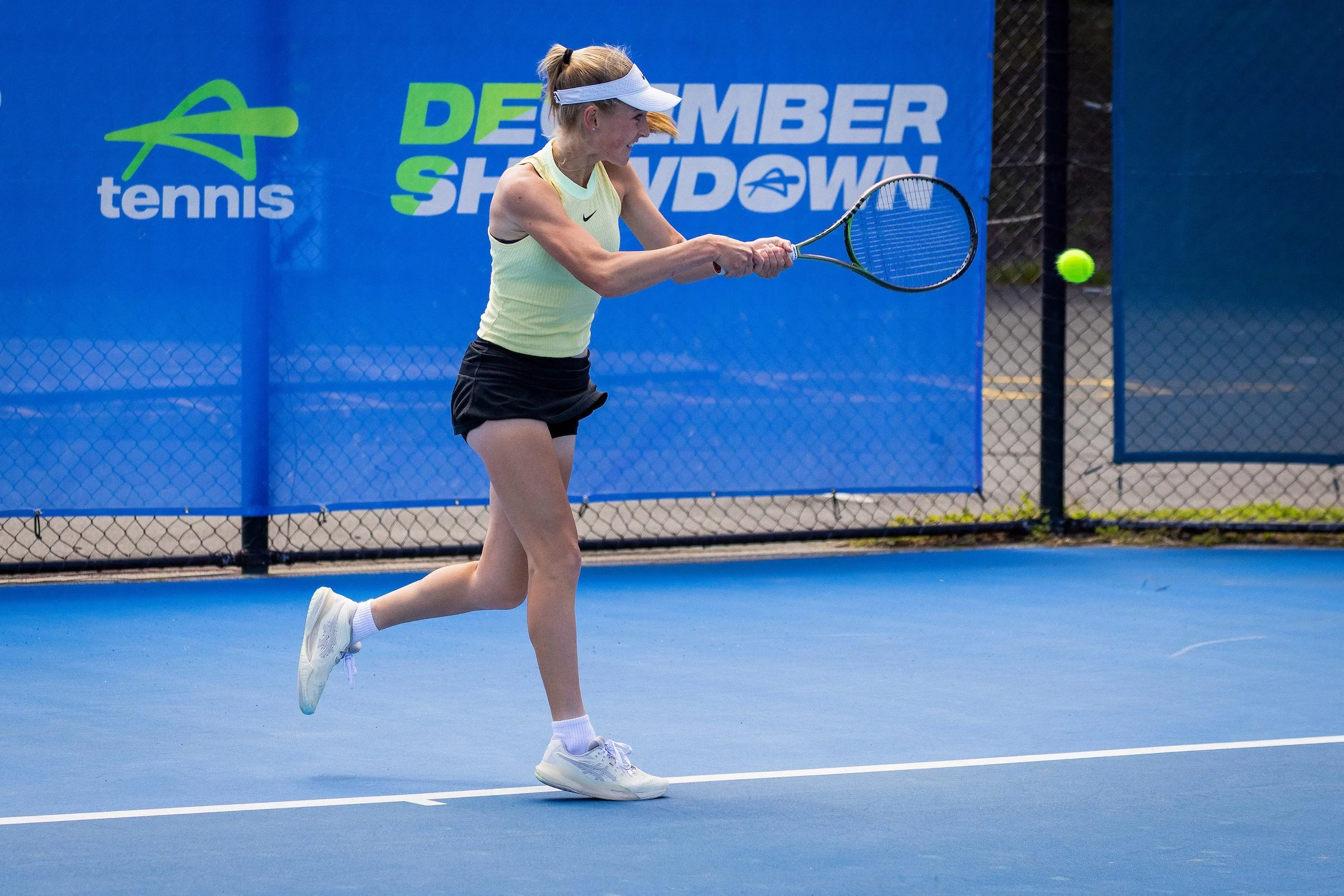 In December, Hazel travelled to Launceston, Tasmania to compete in both the 16/U and 18/U Australian National Championships. Across both weeks she fought through qualifying to earn her place in the main draw, faced some seriously tough opponents, and recorded her first best-of-three sets win against a higher-ranked player — a huge milestone.