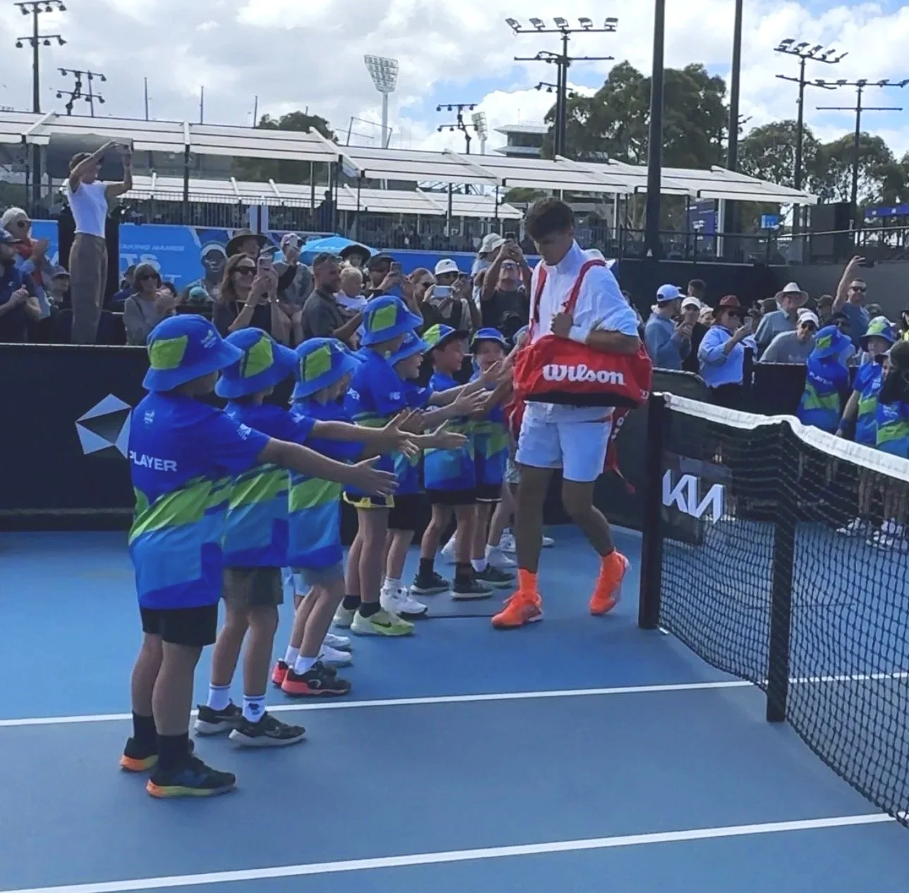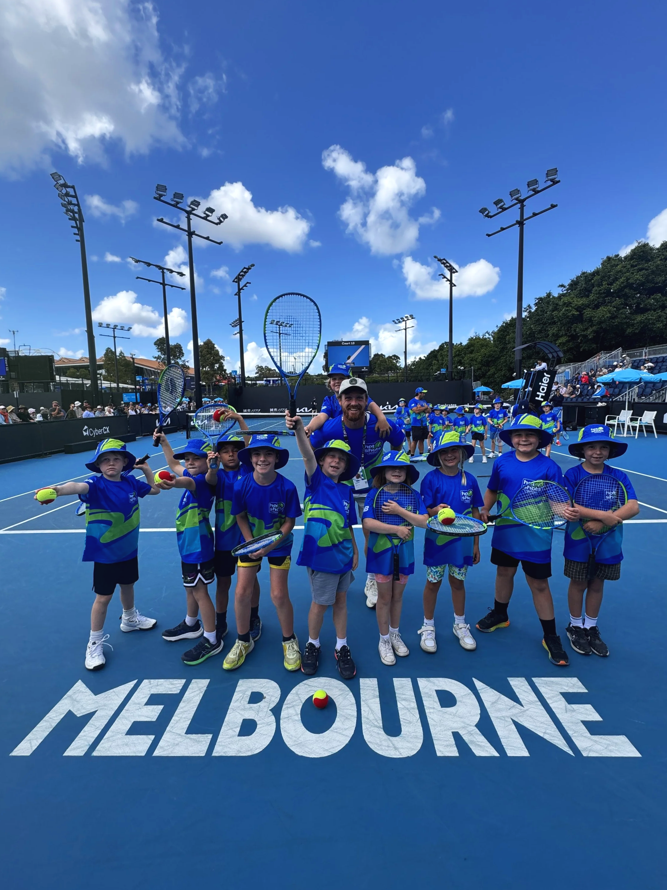 On Thursday 22 January, JV Tennis Academy took 10 Hot Shots players to The AO Hot Shots Day at Melbourne Park — a celebration day designed for kids and families to have the opportunity to play on the same courts as the best in the world. The Hot Shots Day also includes special moments like a parade through the Ball Park, playing on the courts of Melbourne Park just before the pros take to the courts, player interactions and opportunity to toss the coin for the match for on lucky player.