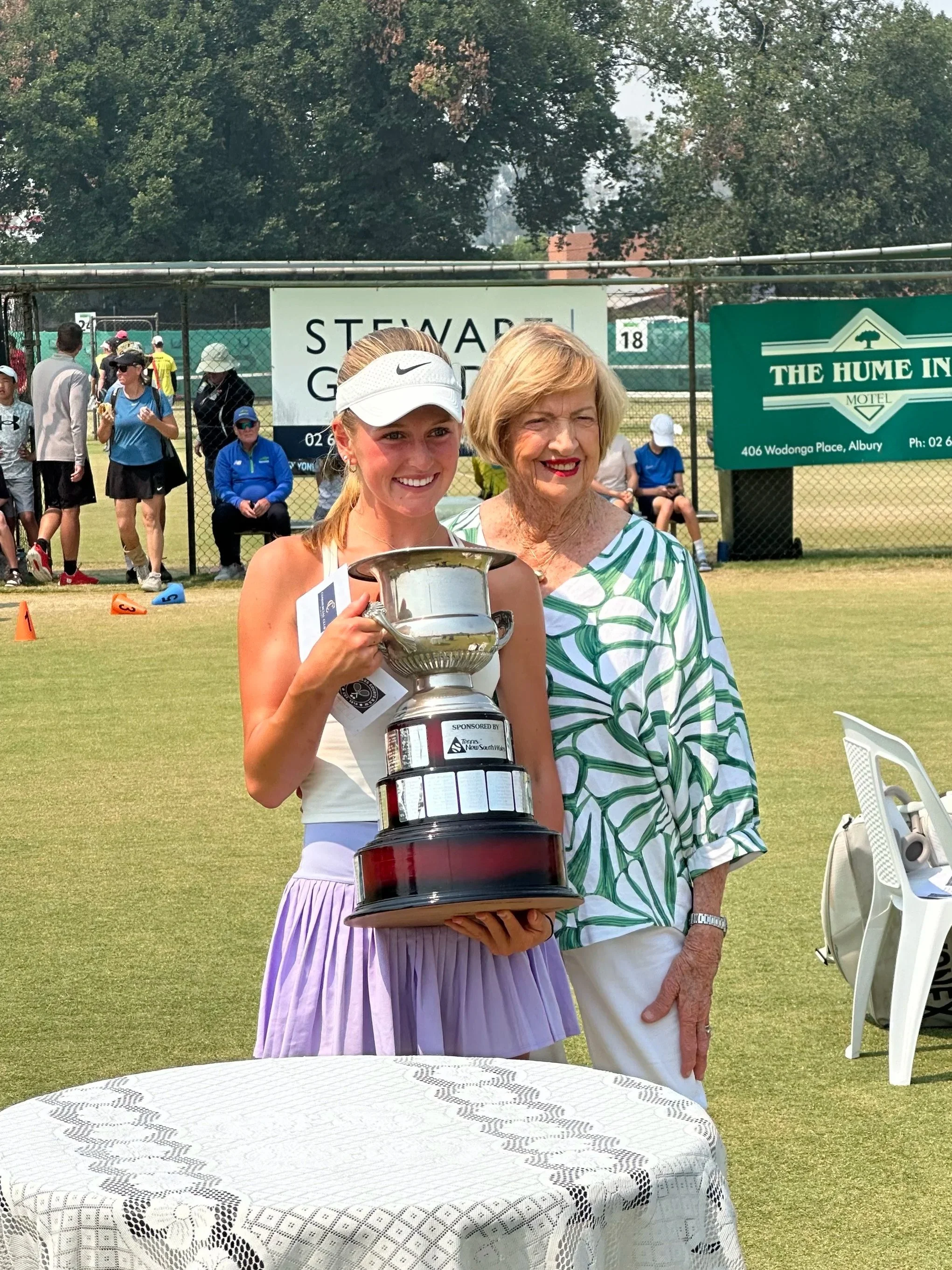 In January, Hazel backed it up by winning the Margaret Court Cup in Albury, pictured with the great Margaret Court (24 Grand Slam singles titles). And post match was interviewed by Channel 7, which can be viewed here.