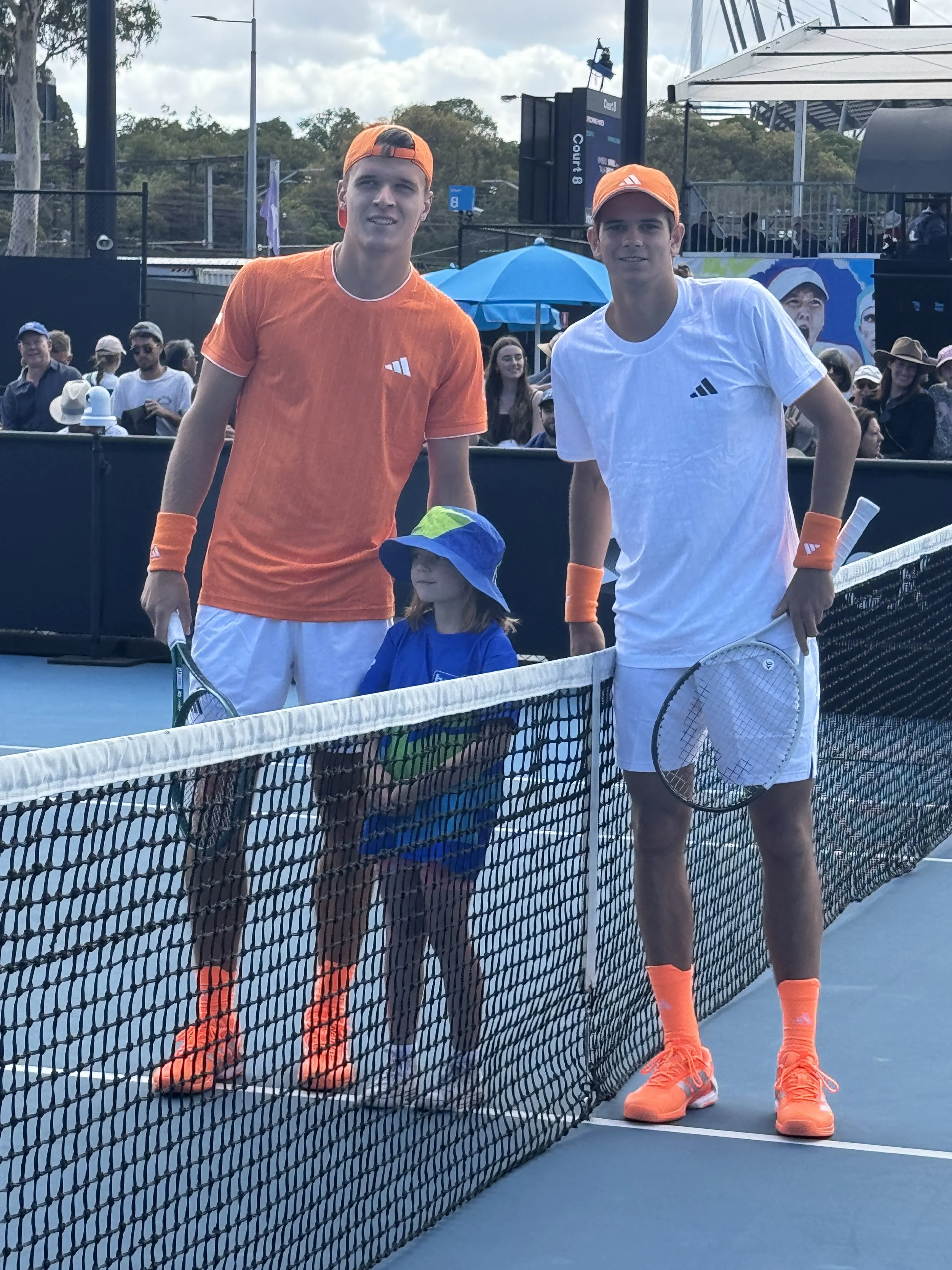 The highlight match that followed for our group was Rafael Jódar (University of Virginia standout) up against Jakub Menšík (ATP World No. 16) — and one of our players Junie even got to complete the coin toss, taking home the official Australian Open match coin as a keepsake.